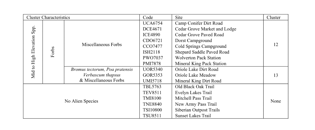 Let's take this ecological survey table for example. The left side has hierarchical row headers, some cells merge across multiple rows, scientific names appear in italics alongside regular text, and the structure creates nested relationships between elevation zones, vegetation types, and site locations.